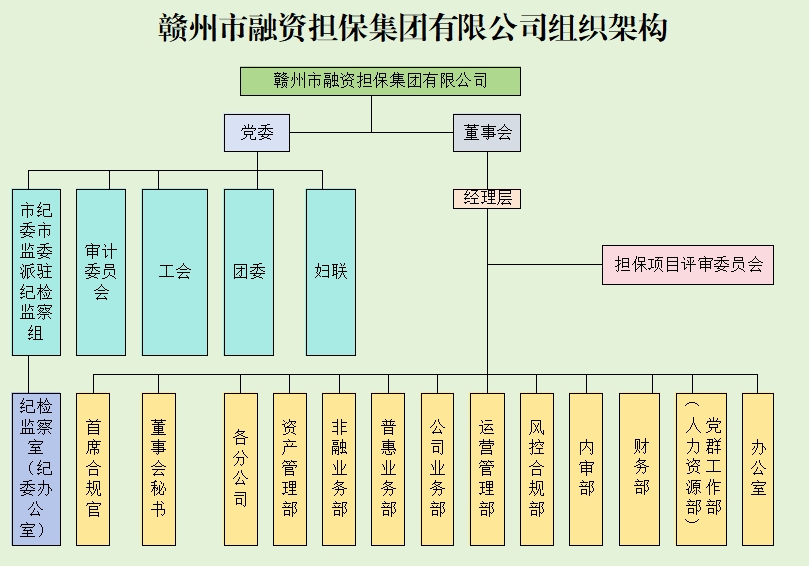 2024年6月,集團(tuán)升格為比照正處級(jí)管理的市屬國有金融企業(yè),內(nèi)設(shè)10個(gè)部門,下設(shè)8個(gè)分公司和12個(gè)子公司,現(xiàn)有員工99人(不含子公司),黨員45人。2024年,集團(tuán)公司在市委、市政府的領(lǐng)導(dǎo)下,以政策為導(dǎo)向,以創(chuàng)新為驅(qū)動(dòng),聚焦主責(zé),深耕主業(yè),凝心聚力、砥礪前行,充分發(fā)揮政府性融資擔(dān)保機(jī)構(gòu)功能。年末在??蛻羝迫f戶,增長(zhǎng)23%;金額突破300億元,增長(zhǎng)15%。全年服務(wù)實(shí)體企業(yè)超2萬戶,獲贛州市金融業(yè)支持地方經(jīng)濟(jì)發(fā)展考核綜合獎(jiǎng)第一名,并被列為全省政府性融資擔(dān)保機(jī)構(gòu)改革試點(diǎn)單位。